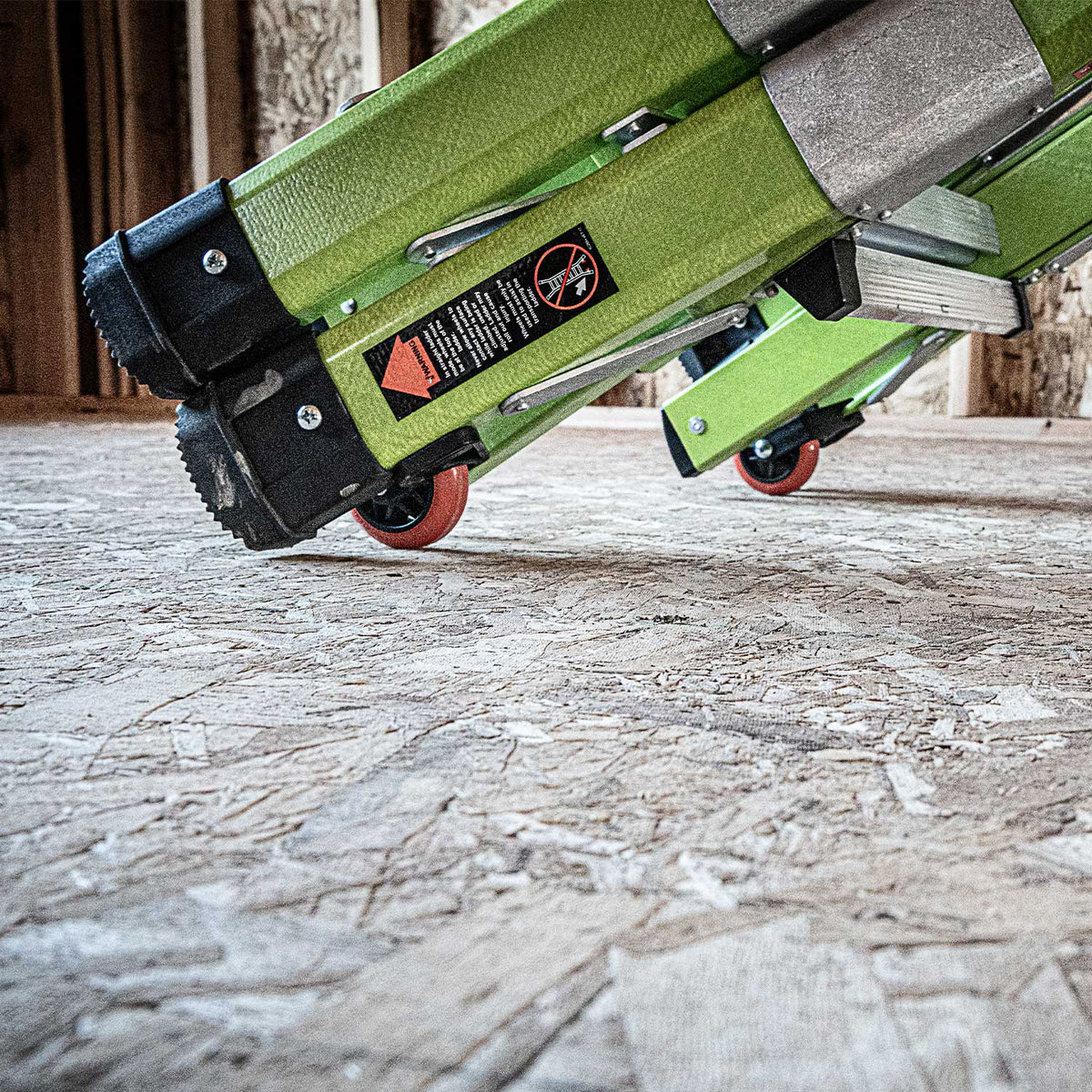 The Dark Horse's integrated Tip & Glide wheels help you move the ladder easily from job to job.
