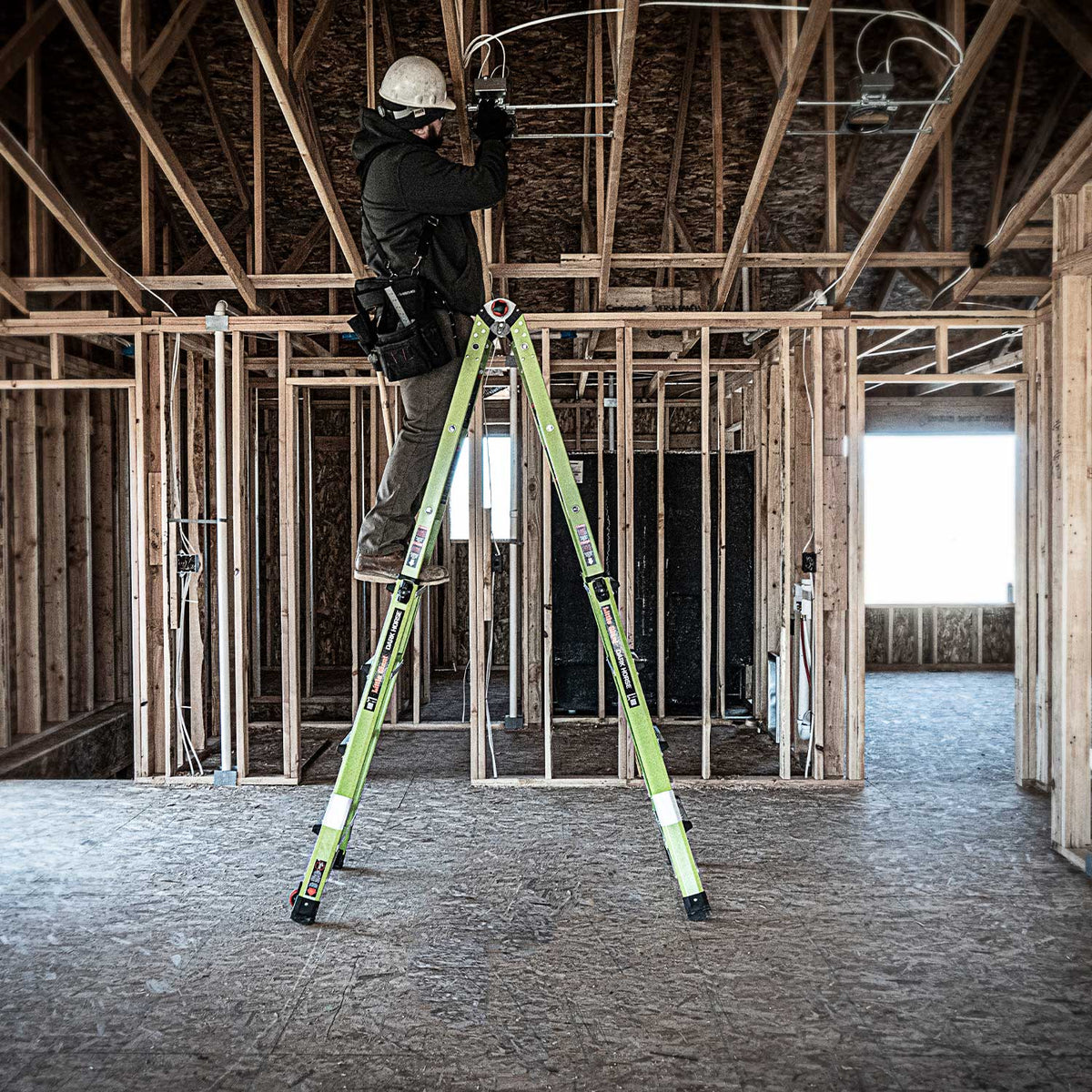 It's truly a ladder built for the trades. Made from lightweight, durable fiberglass, you can work safely around electricity.
