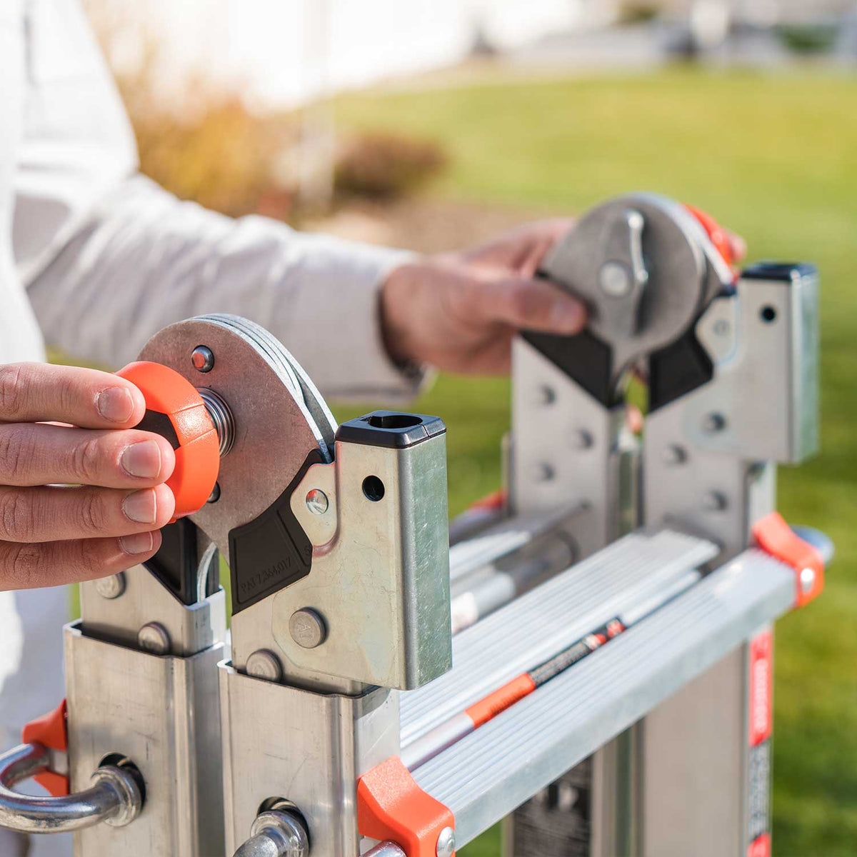 Featuring patented hinges and telescoping slides, you can set up your ladder in multiple positions, giving you the freedom to approach any task with ease. The MegaLite easily converts from A-frame to extension, staircase, 90-degree or trestle-and-plank scaffolding*.
