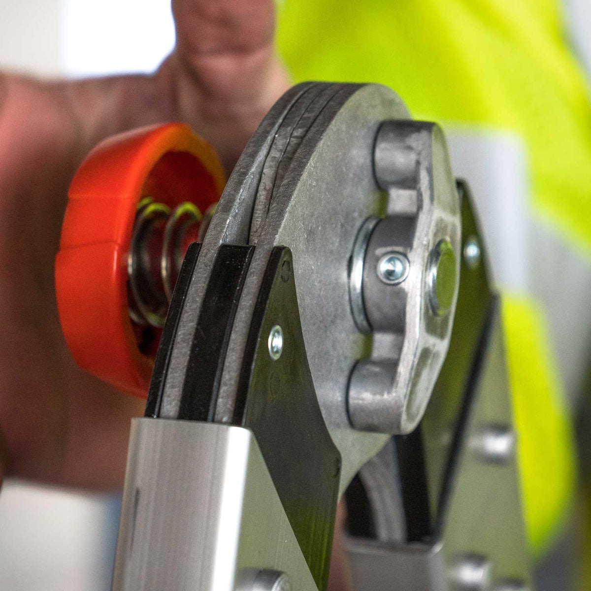 Grip and twist the Rapid Lock, and then slide the rails of the ladder to the desired size. Twist the Rapid Lock once more to lock the ladder rails in place.