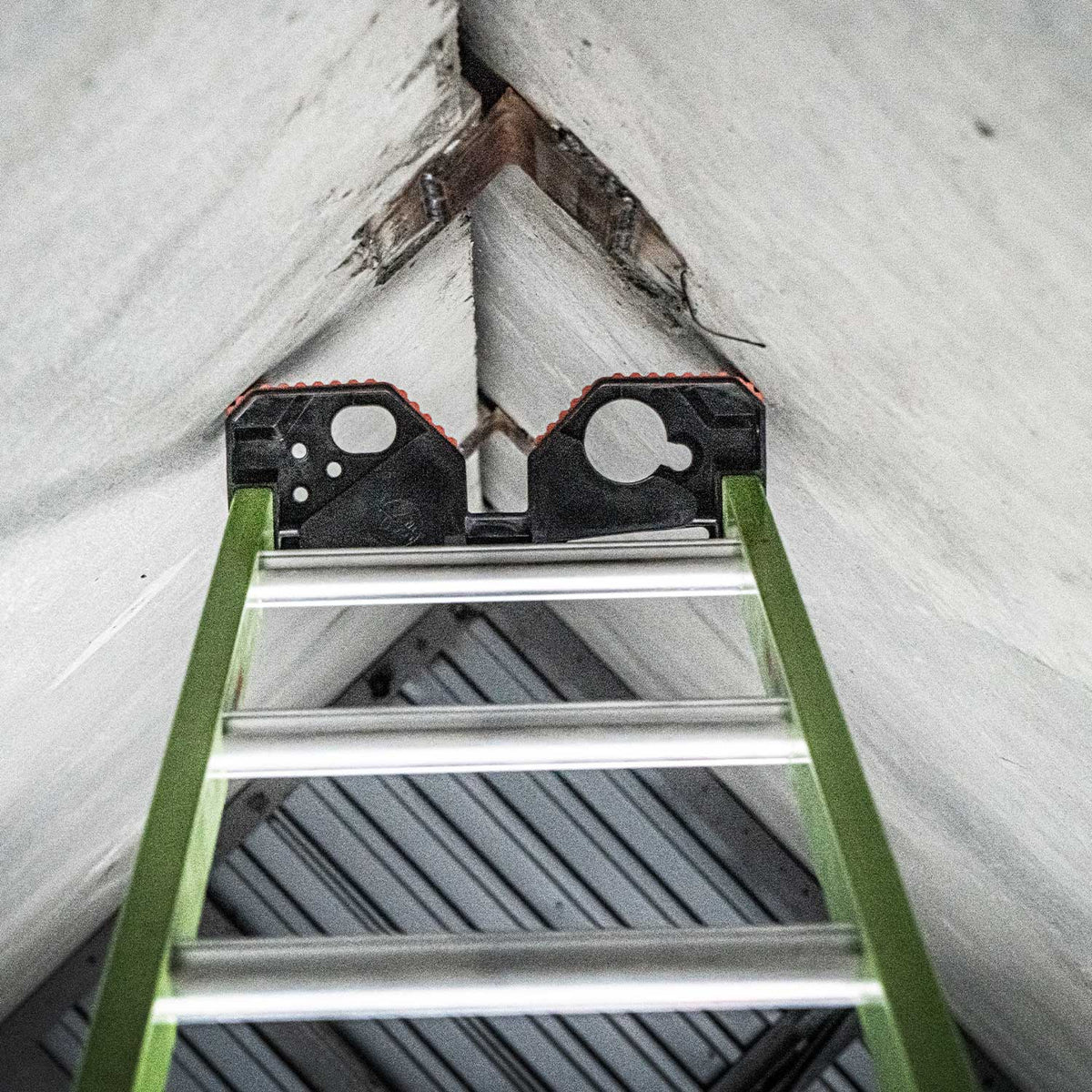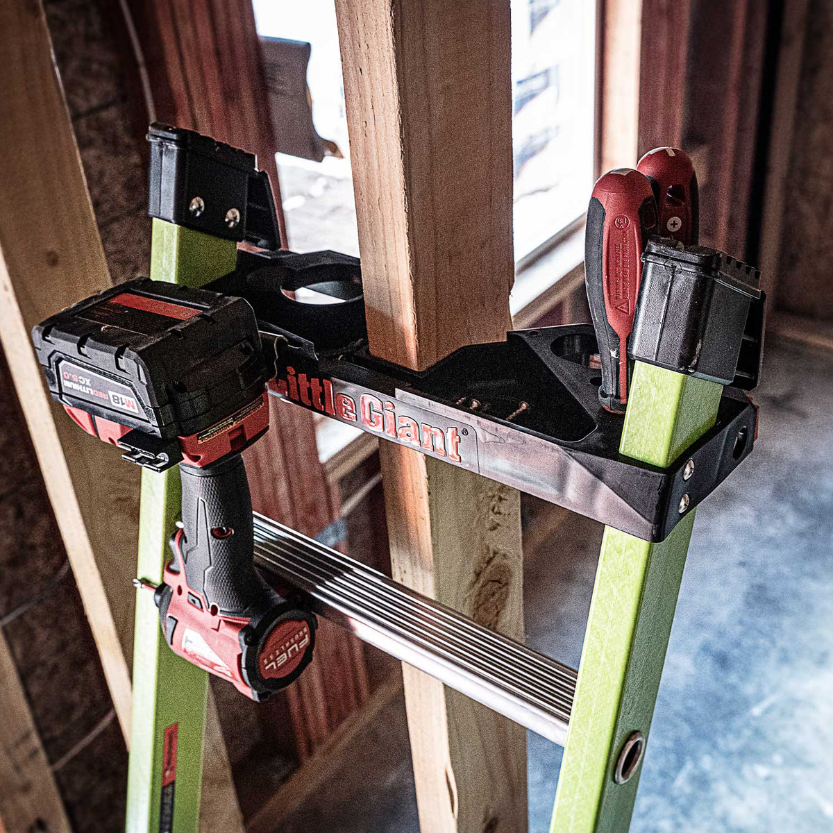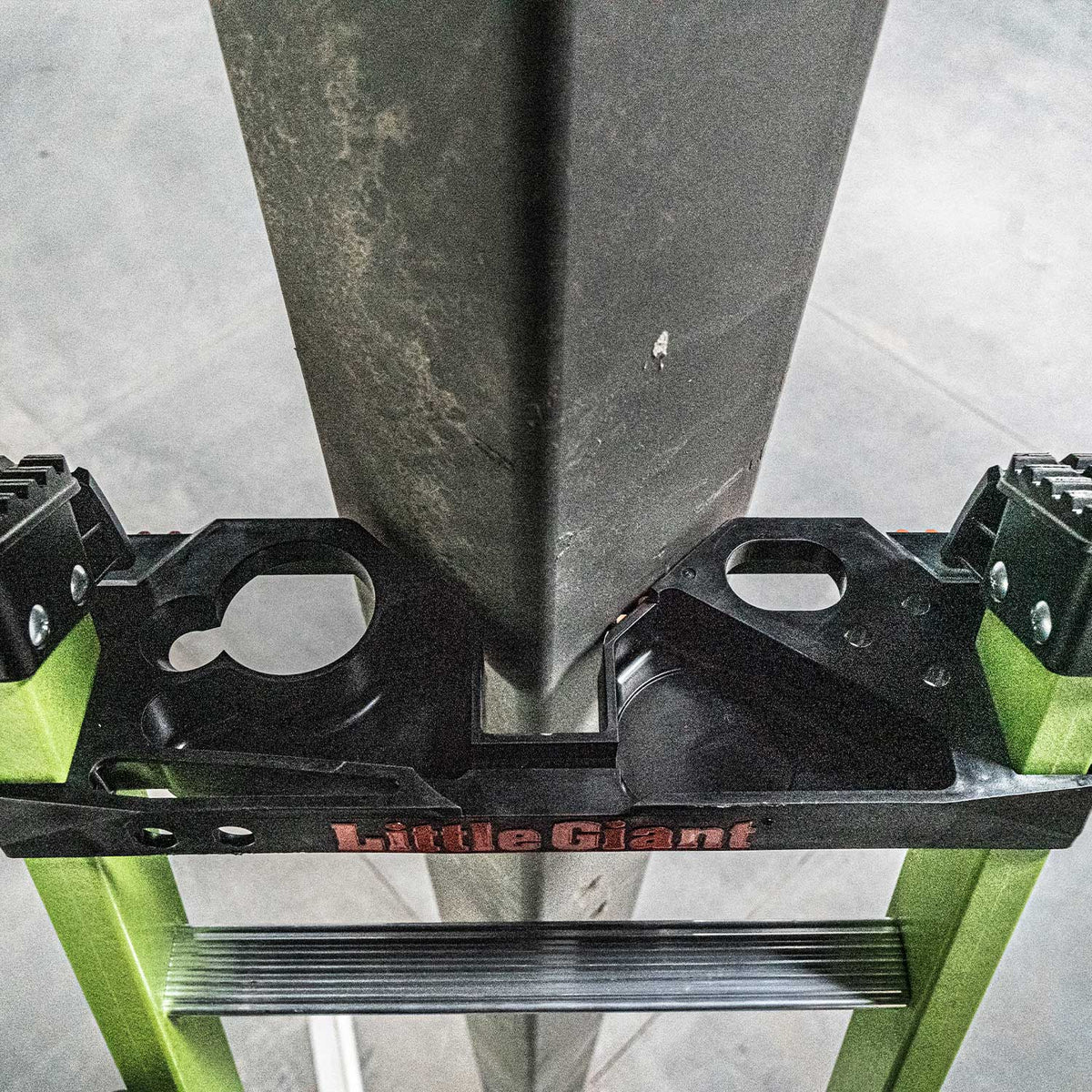 Designed to fit the Little Giant® King Kombo™ ladder, the Quad Pod is Little Giant’s patent-pending four-position wall, corner and stud accessory. The Quad Pod attaches to the King Kombo in the extension position, allowing you to use your ladder on inside corners, outside corners, walls and studs with ease. Using its durable traction pads, the Quad Pod grips and protects easily damaged surfaces. This accessory also incorporates tool slots, trays and hooks to keep all of your tools at-hand while working.
