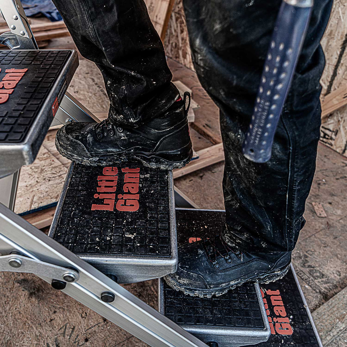 The wide, rubberized feet help you work over grates or other surfaces where smaller ladder feet could slide.