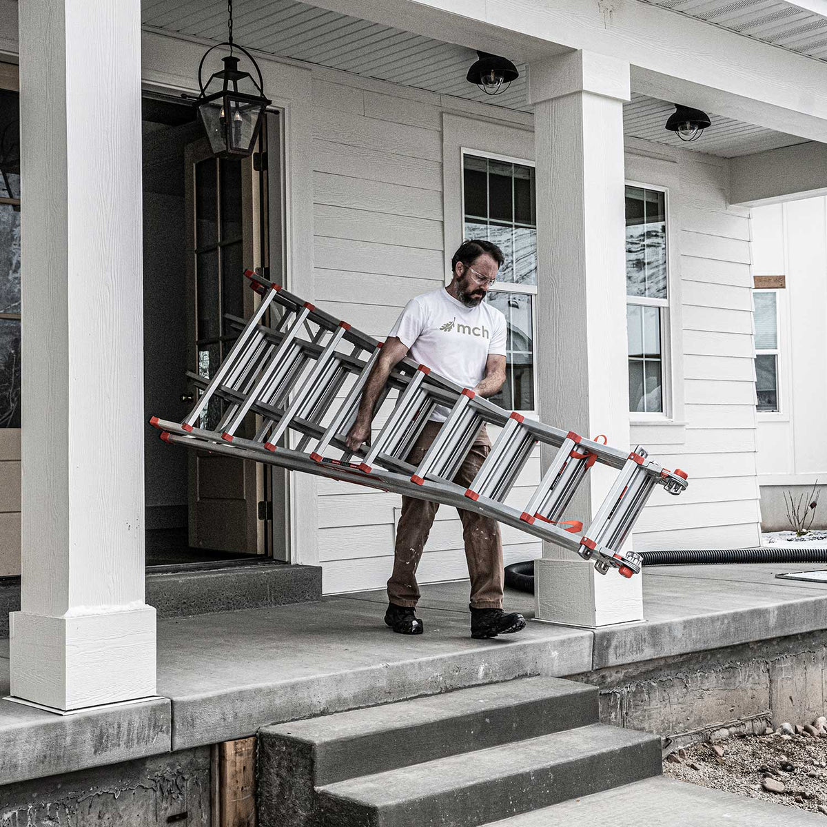 Projects involving tall ceilings and hard-to-reach places which require you to use lifts or scaffolding to perform maintenance. Sometimes these options are bulky, preventing you from getting the work done. The Little Giant® SkyScraper™ adjustable ladder helps you complete those tasks more easily. Its multi-position functions make it a perfect adjustable ladder for stairs, chandeliers, skylights and other difficult locations in rooms with high vaulted ceilings.